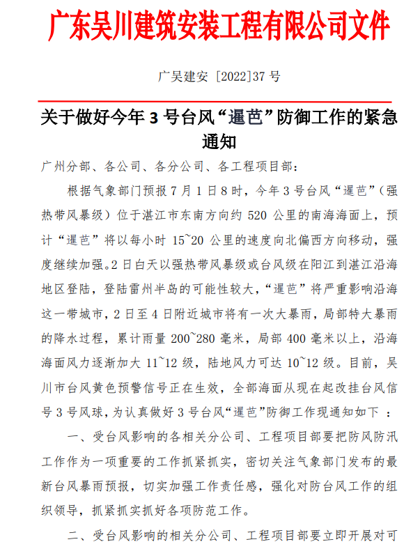 廣吳建安[2022]37號文:關(guān)于做好今年3號臺風(fēng)“暹芭”防御工作的緊急通知