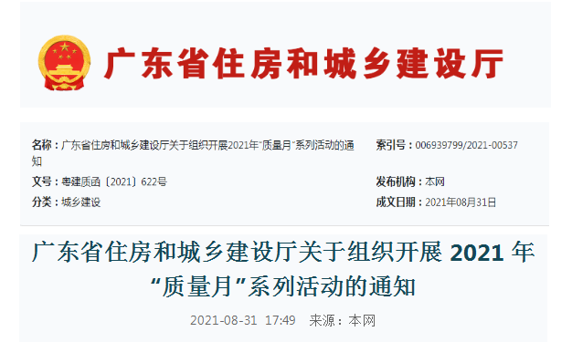 為深入貫徹習(xí)近平新時(shí)代中國(guó)特色社會(huì)主義思想,全面落實(shí)黨的十九大和十九屆二中、三中、四中、五中全會(huì)精神,牢固樹(shù)立“質(zhì)量第一”的意識(shí),不斷提升建筑工程品質(zhì),根據(jù)《市場(chǎng)監(jiān)管總局等20個(gè)部門關(guān)于開(kāi)展2021年全國(guó)“質(zhì)量月”活動(dòng)的通知》(國(guó)市監(jiān)質(zhì)〔2021〕51號(hào)),我廳決定于9月組織開(kāi)展2021年全省住房城鄉(xiāng)建設(shè)系統(tǒng)“質(zhì)量月”活動(dòng)?,F(xiàn)將有關(guān)事項(xiàng)通知如下: