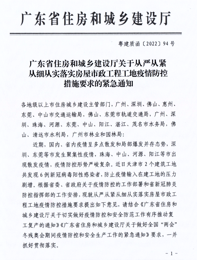 關(guān)于轉(zhuǎn)發(fā)省住建廳《關(guān)于從嚴(yán)從緊從細(xì)從實(shí)落實(shí)房屋市政工程工地疫情防控措施的緊急通知》的緊急通知