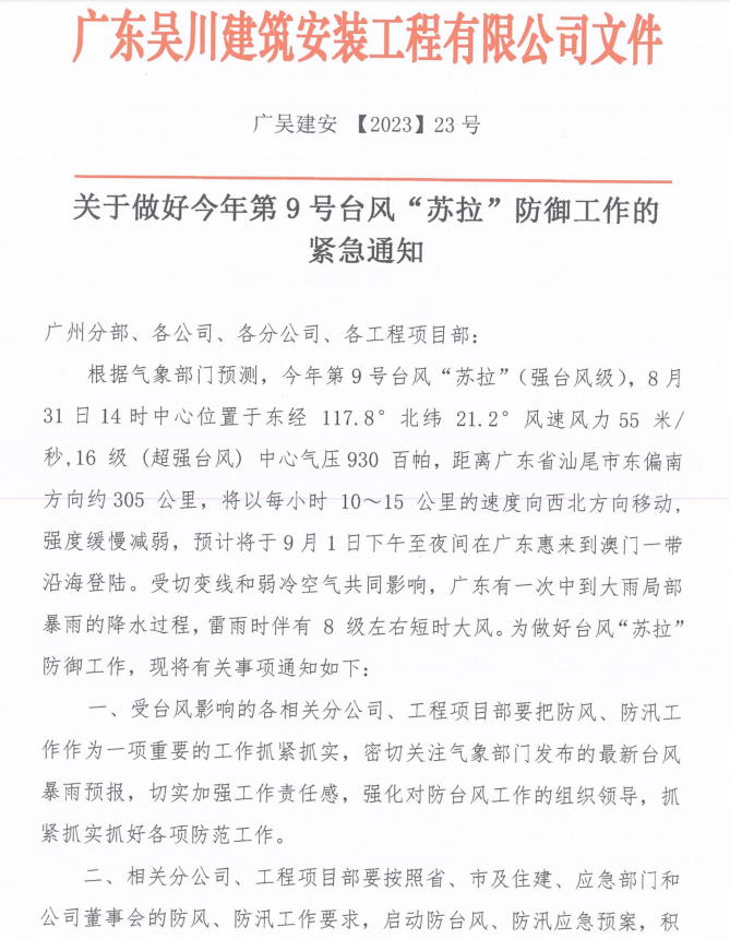 關(guān)于做好今年第9號(hào)臺(tái)風(fēng)“蘇拉”防御工作的緊急通知